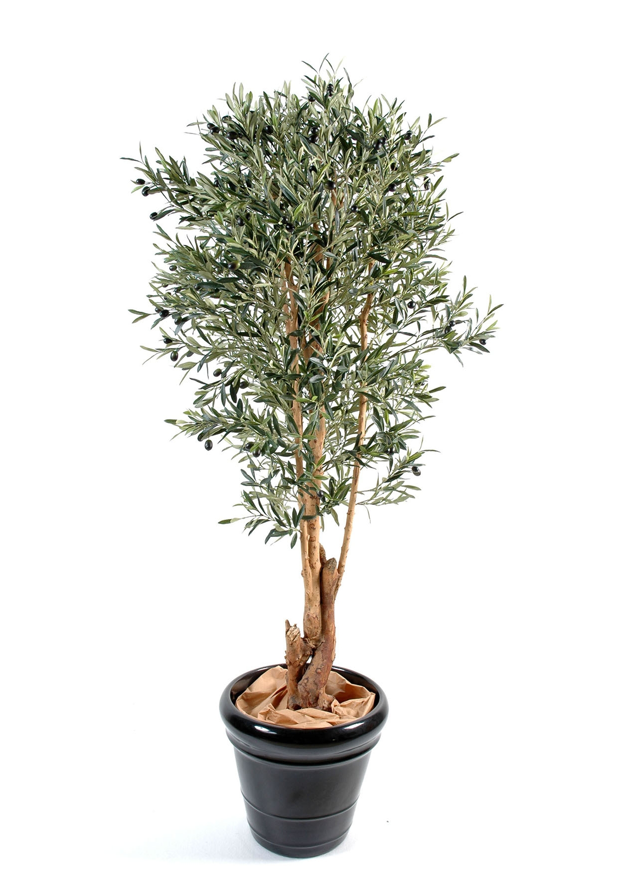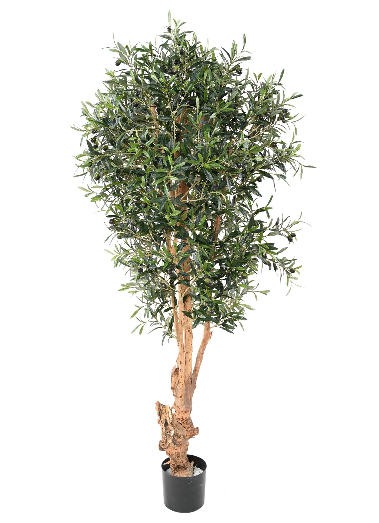 Tronc bois naturel - olives en plastique et feuillages en polyéthylène uv